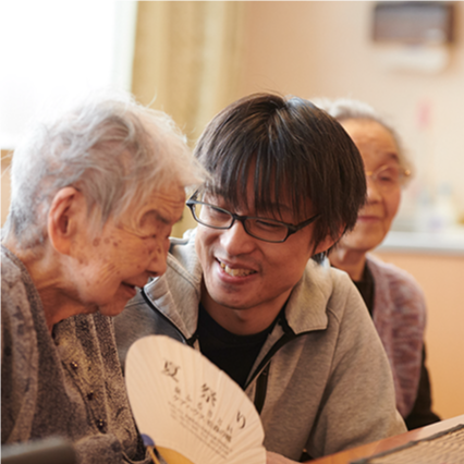 スタッフ総出でご利用者に楽しんでいただくイベントを企画、開催しております。広大な敷地にある桜や畑、屋上の庭を利用した四季折々の活動やイベントも盛り沢山!お庭で日光浴やお散歩などの気分転換をしたり、畑では土づくりから種まき、収穫まで行うことができます。収穫した野菜は食事やおやつ、芋煮会などのイベントで使用したりと大活躍!作ったご利用者のやりがいや畑仕事を行うことで自然と健康維持と介護予防にも繋がっています。